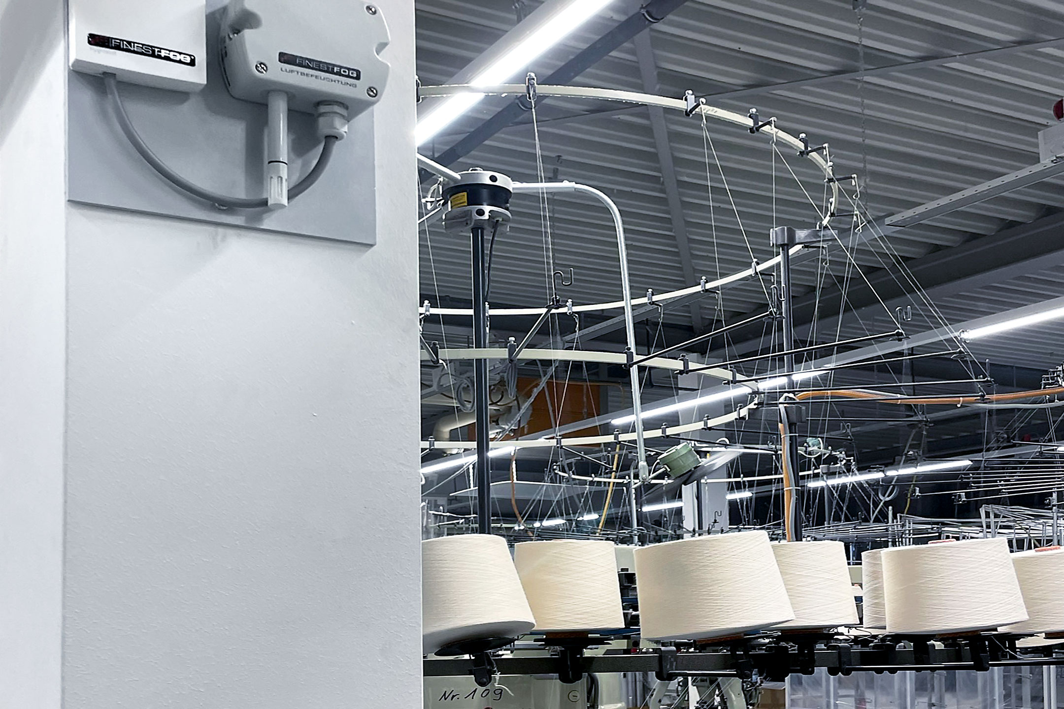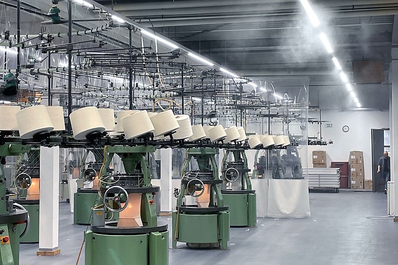 In der Textilindustrie ist eine ausreichend hohe Luftfeuchtigkeit (>50% r.F.) besonders wichtig. Die Karl Conzelmann GmbH&Co.KG aus Albstadt ist ein führender Hersteller von hochwertiger Damenunterwäsche (Nina von C). Seit 2018 ist eine FINESTFOG Luftbefeuchtung in der Strickerei im Einsatz.